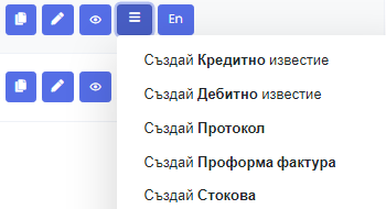 От вече създаден документ(проформа, стокова и др.), можете директно да създадете друг документ (фактура, стокова и др.)